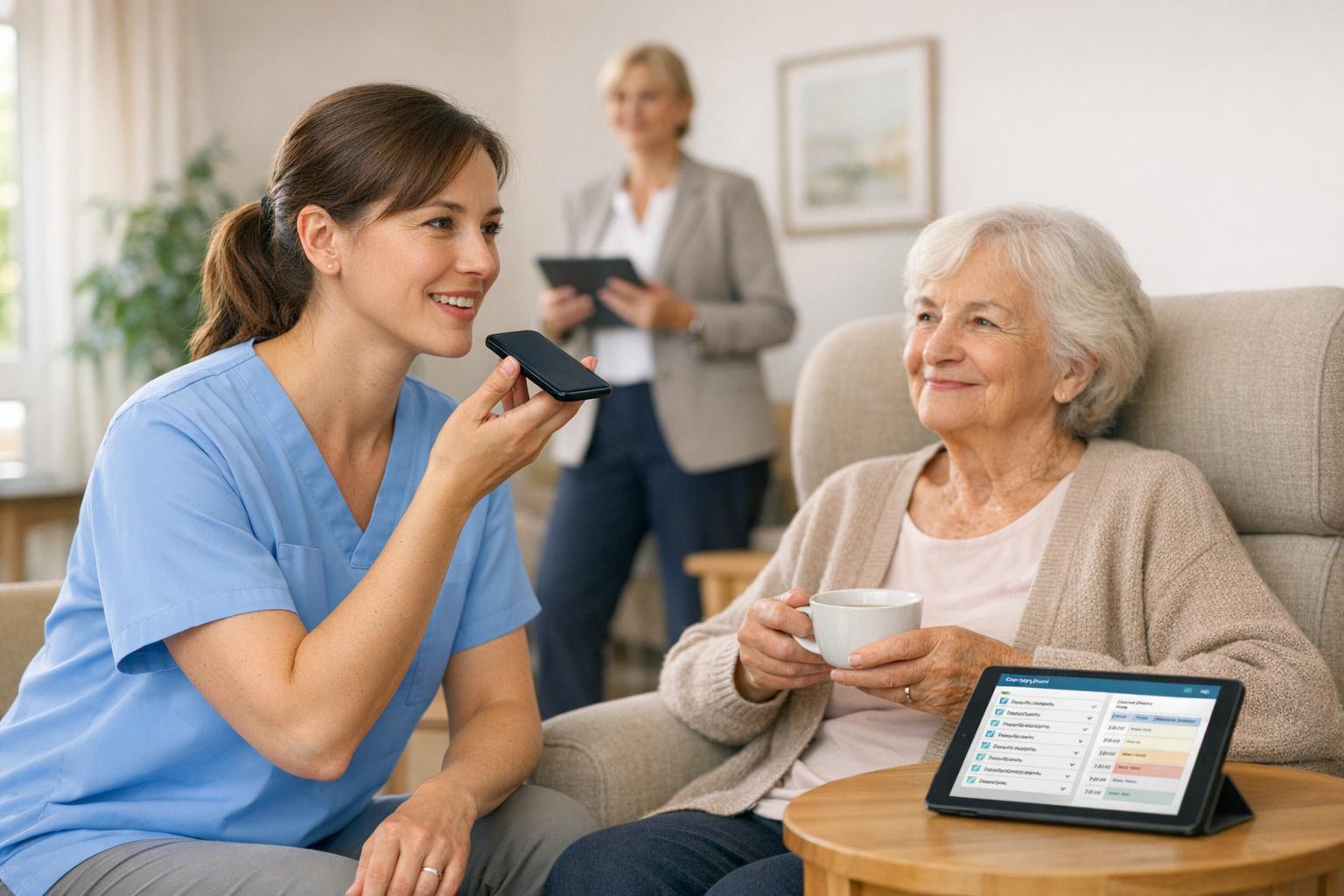 Neben der Vermeidung von Doppelarbeit spielt die mobile Nutzung eine zentrale Rolle. Der größte Vorteil mobiler Lösungen zeigt sich, wenn Pflegekräfte direkt vor Ort, etwa am Bett, dokumentieren können – und nicht erst Stunden später am stationären PC. Mobile KI-Lösungen auf Smartphones oder Tablets ermöglichen genau das. Pflegekräfte können ihre Beobachtungen unmittelbar nach dem Bewohnerkontakt einsprechen, die KI strukturiert die Informationen und überträgt sie ins System. Das spart nicht nur Zeit, sondern reduziert auch „Technostress“ und Fehler, die entstehen, wenn die Dokumentation bis zum Schichtende aufgeschoben wird [2][9].
