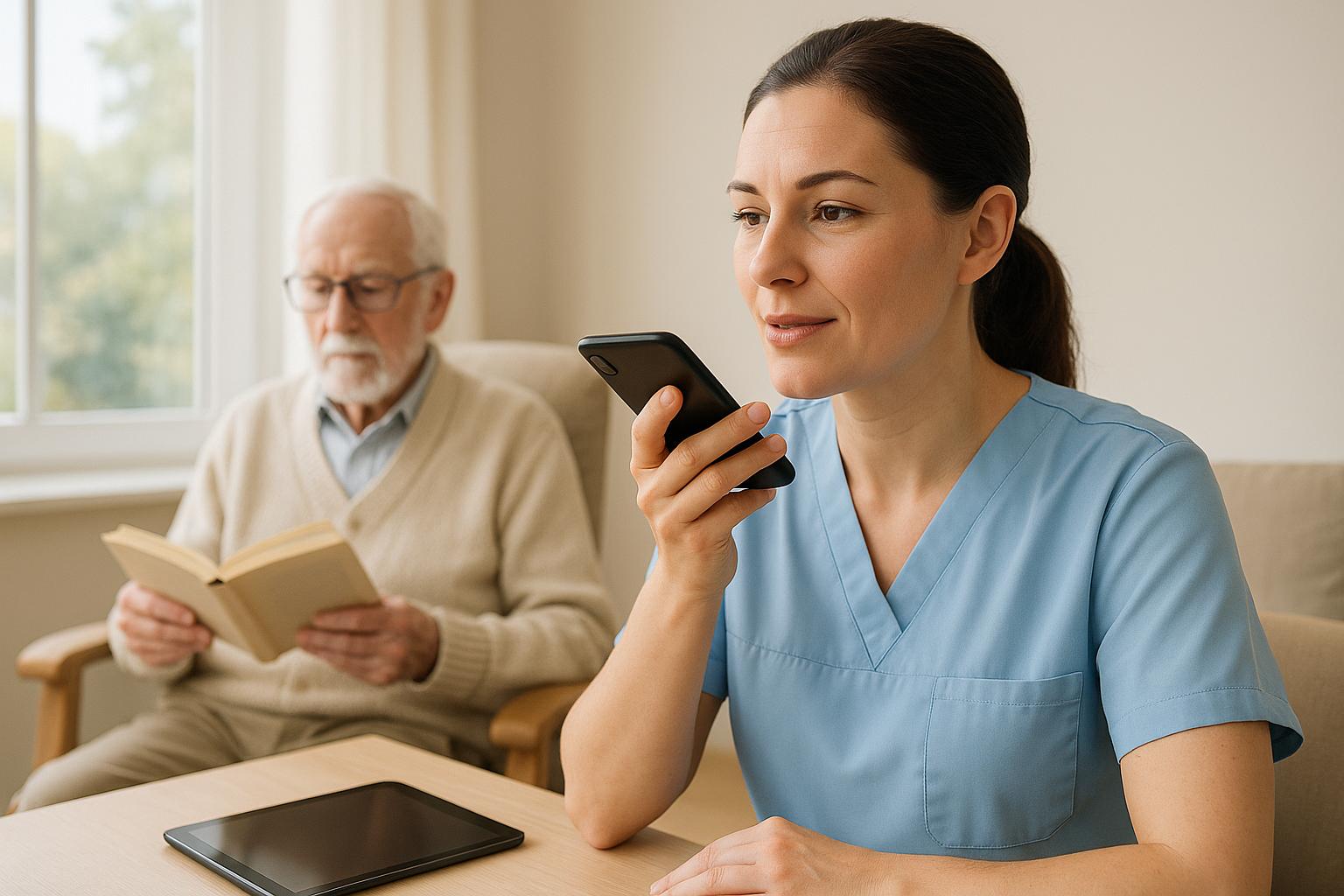 Körperliche Entlastung: Stundenlanges Tippen oder das Ausfüllen von Formularen kann zu Verspannungen und anderen Beschwerden führen. Die sprachgesteuerte Dokumentation ermöglicht eine natürlichere Haltung und reduziert monotone Bewegungen – eine echte Erleichterung für Pflegekräfte, die ohnehin körperlich stark gefordert sind.