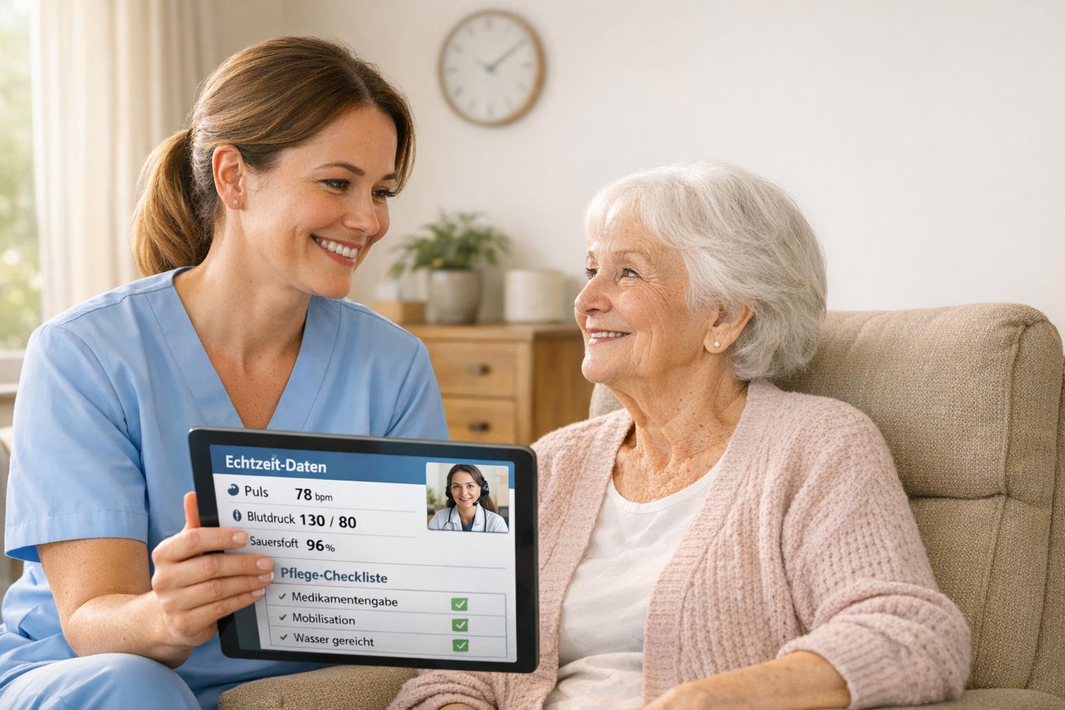 Wie Echtzeit-Daten in Pflegeheimen Dokumentation, Effizienz und Lebensqualität verbessern – Studien zeigen Zeitersparnis, weniger Fehler und erfolgreiche Telemedizin.