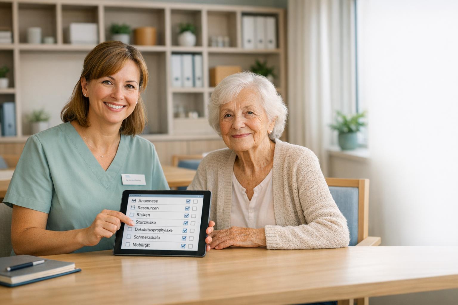Standardformulare für Risikoeinschätzungen und Vitalzeichen sind hilfreich, um sicherzustellen, dass alle Pflichtangaben enthalten sind. Begriffe wie Dekubitusprophylaxe, Sturzrisiko und Medikamentenplan sollten in der Dokumentation nicht fehlen. Diese Begriffe dienen nicht nur der Vorbereitung auf MDK-Prüfungen, sondern auch der rechtlichen Absicherung des Pflegepersonals.